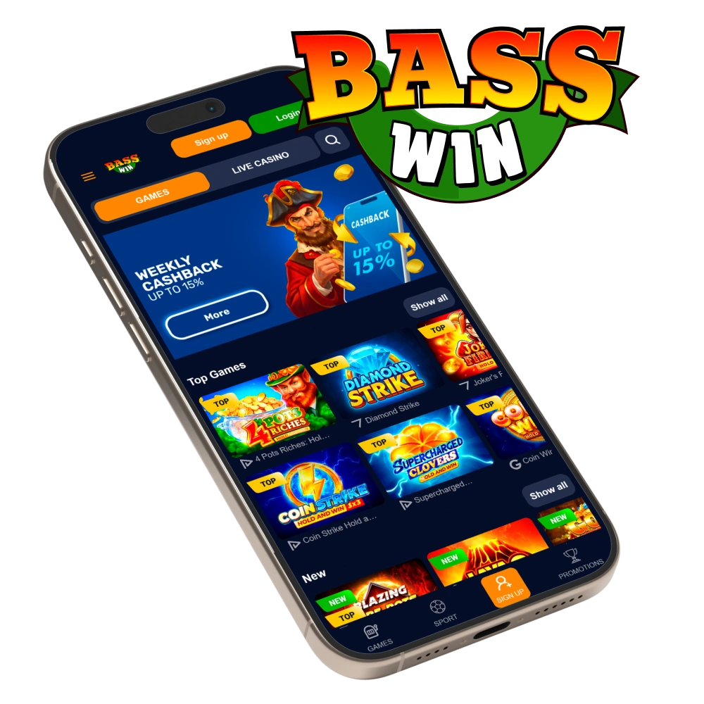 We offer a specific bonus if you choose the Bass Win casino app download option. Top up your balance after installation to receive an extra gift based on your deposit amount.